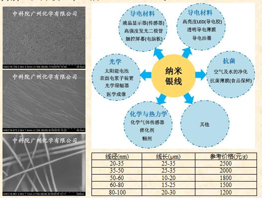 中科院廣州化學(xué)有限公司前身為成立于1958年的中國科學(xué)院廣州化學(xué)研究所,它是中國科學(xué)院在華南地區(qū)唯一的以應(yīng)用研究和高技術(shù)創(chuàng)新為主的綜合性化學(xué)研發(fā)機構(gòu),也是中國科學(xué)院新型特種精細(xì)化學(xué)品技術(shù)與產(chǎn)業(yè)化聯(lián)盟的盟主單位。主要從事粘膠劑、涂料、化灌材料等環(huán)保型高分子材料、電子信息聚合物以及建材添加劑等精細(xì)化學(xué)品的研發(fā)、生產(chǎn)和銷售。公司與加拿大女皇大學(xué)合作,擁有納米銀線、導(dǎo)電油墨、導(dǎo)電銀漿和透明導(dǎo)電薄膜等材料的研發(fā)和生產(chǎn),可以提供多種級別的納米銀線分散液等產(chǎn)品,銀納米線可選直徑有20-35nm,35-50nm,50-60nm60-80nm,80-100nm等,銀納米線長度可以根據(jù)客戶要求定制,溶劑可選去離子水、無水乙醇、異丙醇或客戶指定,濃度可為5mg/ml10mg/ml、20mg/ml或客戶指定。一般供貨時間兩天以內(nèi),量多的話供貨時間待商榷。