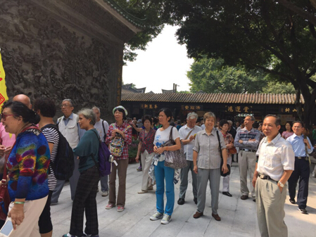 下午,大家重點(diǎn)參觀了寶墨園。園內(nèi)溪水環(huán)繞,綠樹蔥蔥,建筑、園林、山水、石橋等布局合理,和諧自然,體現(xiàn)了中國(guó)天人合一的人文理念。園內(nèi)亭臺(tái)樓閣錯(cuò)落有致,雕梁畫棟美不勝收,陶塑、瓷塑、磚雕、灰塑、石刻、木雕等藝術(shù)精品琳瑯滿目,其中也不乏驚世之作?!锻缕G和鳴壁》被上海大世界吉尼斯總部認(rèn)定為“最大的磚雕作品”,工藝精湛,令人感嘆我國(guó)磚雕工藝的至高境界。巨幅瓷塑壁畫《清明上河圖》,恢弘奪目,又讓人思憶起我國(guó)古代盛世的壯麗圖景。來到這里,老同志欣賞著風(fēng)景如畫的自然和人文景觀,感悟深刻的文化內(nèi)涵,大家心情格外舒暢,并紛紛拍照留影,記錄下了旅途中愉悅的心情。