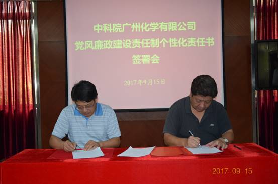 為全面貫徹落實(shí)全面從嚴(yán)治黨要求,進(jìn)一步推動(dòng)黨風(fēng)廉政和反腐倡廉建設(shè),同時(shí),按照重新修訂的《中科院廣州化學(xué)有限公司黨風(fēng)廉政建設(shè)責(zé)任制實(shí)施細(xì)則》(實(shí)施細(xì)則)的要求,廣州化學(xué)組織領(lǐng)導(dǎo)班子成員之間、分管領(lǐng)導(dǎo)與分管部門主要負(fù)責(zé)人之間、黨委副書記與各支部書記之間根據(jù)各自的職務(wù)職責(zé)按照實(shí)施細(xì)則的要求重新簽訂了個(gè)性化的責(zé)任書。