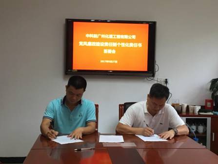 為貫徹落實(shí)黨中央全面從嚴(yán)治黨的要求,加強(qiáng)化灌公司黨風(fēng)廉政建設(shè),根據(jù)廣州化學(xué)關(guān)于黨風(fēng)廉政建設(shè)的新要求,結(jié)合化灌公司的具體情況,化灌公司經(jīng)營班子成員之間、化灌公司經(jīng)營班子與分管部門負(fù)責(zé)人之間簽訂了《黨風(fēng)廉政建設(shè)責(zé)任書》(責(zé)任書)。