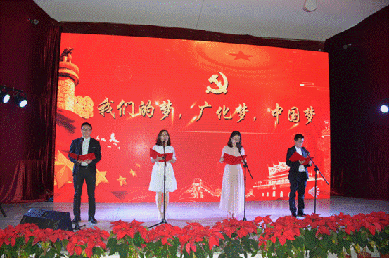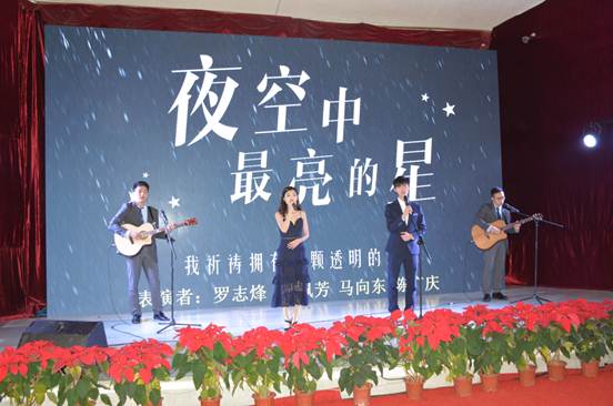 文藝匯演開始前,廣州化學(xué)全體領(lǐng)導(dǎo)班子成員走上舞臺向全體員工獻(xiàn)上了新春的祝福。文藝匯演在嘹亮的《 歌唱祖國 》中拉開了序幕,詩朗誦《我們的夢、廣化夢、中國夢》展現(xiàn)了廣化人頑強(qiáng)拼搏,為夢想不斷努力奮斗的精神;手語舞蹈《愛》勾起了大家滿滿的回憶;語言節(jié)目《三句半》引起了滿堂的歡聲笑語;獨(dú)舞《羞答答的玫瑰靜悄悄的開》,以優(yōu)雅的舞姿為文藝匯演注入一股清新的暖流;吉他彈唱《成都》+《夜空中最亮的星》歌曲或深情款款、或歡快明朗,帶動(dòng)了匯演的氣氛;《三人小人舞》不時(shí)地引得現(xiàn)場觀眾爆發(fā)出陣陣的笑聲和掌聲。節(jié)目過程中還穿插了抽獎(jiǎng)環(huán)節(jié)與臺下觀眾進(jìn)行了互動(dòng)。