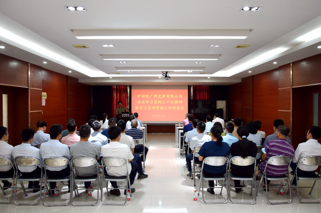 11月15日,中科院廣州化學有限公司(廣州化學)召開傳達學習黨的二十大精神暨學習宣傳貫徹工作部署會,廣州化學中層及以上領導干部、黨委委員、紀委委員、控股公司總助以上領導干部、在職及研究生黨支部書記和紀檢委員參加會議,會議由黨委書記胡美龍主持。