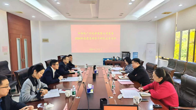 ????1月21日,中科院廣州化學有限公司(廣州化學)黨委召開2024年度黨員領導干部民主生活會。廣州化學全體領導班子參加會議。廣州分院分黨組書記、院長陳廣浩,黨建工作處(紀檢辦公室)處長周晶和副處長王莉惠到會督導。會議由廣州化學黨委副書記(主持工作)、副董事長(主持工作)葉崢主持。