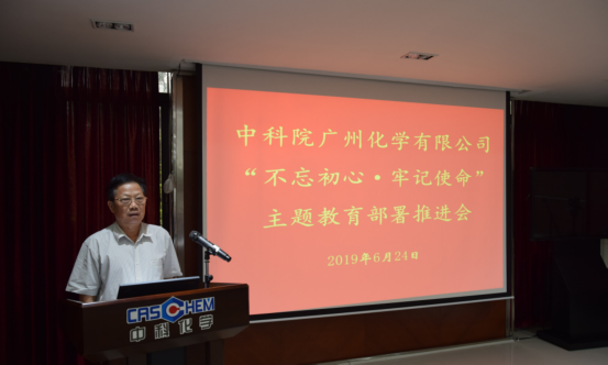 6月24日,中科院廣州化學(xué)有限公司(廣州化學(xué))召開(kāi)“不忘初心、牢記使命”主題教育部署推進(jìn)會(huì)。廣州化學(xué)中層及以上黨員領(lǐng)導(dǎo)干部、控股公司總助以上黨員領(lǐng)導(dǎo)干部、在職黨支部書(shū)記等24人參加會(huì)議。中國(guó)科學(xué)院“不忘初心、牢記使命”主題教育第14指導(dǎo)組(主題教育第14指導(dǎo)組)組長(zhǎng)黃良民到會(huì)指導(dǎo)工作。會(huì)議由廣州化學(xué)黨委書(shū)記、董事長(zhǎng)胡美龍主持。