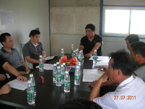 隨后,胡美龍一行聽(tīng)取了施工單位及監(jiān)理單位的階段性工作匯報(bào),代表業(yè)主感謝施工單位和監(jiān)理單位在盛夏酷暑氣候下的辛勤工作。并希望參加建設(shè)的各相關(guān)單位和所有現(xiàn)場(chǎng)施工人員同心協(xié)力、克服困難、加強(qiáng)管理、做好協(xié)調(diào),保質(zhì)保量按時(shí)完成施工任務(wù)。