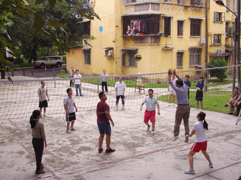 比賽中,隊員們將智慧與體能進行了完美的結合,團結協(xié)作,剛柔并進,將各種球路技巧發(fā)揮得淋漓盡致。霸氣十足的扣球、精準有力的攔網(wǎng)、默契協(xié)作的網(wǎng)前配合和奮不顧身的倒地救球讓比賽高潮迭起。排球畢竟是一項團體運動,位置空缺了,隊友會及時補位;高難度球來了,隊員會不顧一切將球接起;比分落后了,隊員們會相互鼓勵避免急躁泄氣;比分領先了,隊員們會相互提醒避免松懈大意……一個個細節(jié)體現(xiàn)出各隊強大的凝聚力和戰(zhàn)斗力。場上隊員們進行緊張激烈的對抗,場下隊員和觀眾們也不輕松,他們的神經(jīng)被一個個好球刺激地興奮不已,加油助威聲、鼓勵喝彩聲使得整個場面好不熱鬧!