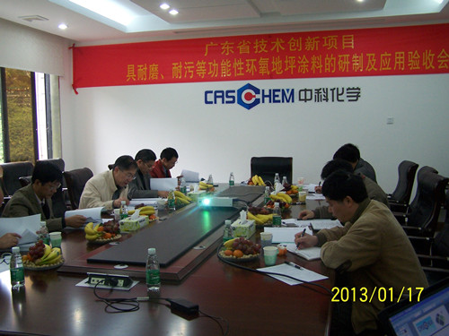 2013年1月17日,中國科學(xué)院廣州分院受廣東省經(jīng)濟(jì)和信息化委員會委托,在廣州市組織召開了中科院廣州化學(xué)有限公司(廣州化學(xué))承擔(dān)的廣東省經(jīng)濟(jì)和信息化委員會2010年廣東省技術(shù)創(chuàng)新項(xiàng)目“具耐磨、防污等功能性環(huán)氧地坪涂料的研制及應(yīng)用”(項(xiàng)目編號:20101022108)驗(yàn)收會。