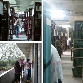 此次活動(dòng)得到了廣大老師的支持和同學(xué)們的積極響應(yīng)。同學(xué)們一早就帶著掃把、拖把、抹布等勞動(dòng)工具齊聚在圖書館門前,在圖書館周老師的指導(dǎo)下,同學(xué)們分成兩組,分別對一樓和二樓圖書室進(jìn)行了打掃。首先對圖書進(jìn)行了除塵工作,然后再用抹布把書和書架擦拭干凈,并對圖書的擺放進(jìn)行了整理,最后把圖書室的地面衛(wèi)生進(jìn)行了打掃和清潔。經(jīng)過兩個(gè)小時(shí)的努力,圖書館的面貌煥然一新。