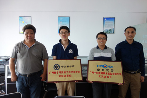 2013年5月20日,中科院廣州化學有限公司(廣州化學)全資子公司——廣州中科檢測技術服務有限公司(中科檢測)武漢辦事處正式成立。廣州化學常務副總經理胡美龍、中科檢測總經理靳燾、副總經理姚聰出席了掛牌儀式。