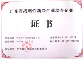 另外,廣州化學已通過廣東省經(jīng)濟和信息化委組織的評審、公示,獲“廣東省戰(zhàn)略性新興產(chǎn)業(yè)培育企業(yè)”認定。