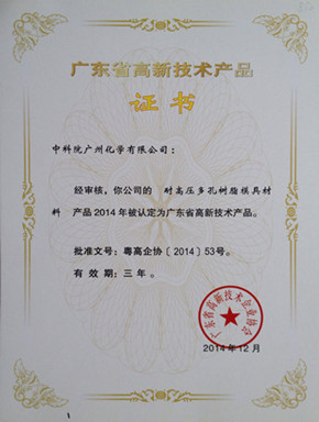 2014 省高新技術(shù)產(chǎn)品 GY系列厭氧膠 2014 省高新技術(shù)產(chǎn)品 環(huán)保型無三苯氯丁膠 2014 省高新技術(shù)產(chǎn)品 耐高壓多孔樹脂模具材料