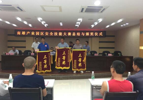 為進(jìn)一步增強(qiáng)南雄產(chǎn)業(yè)轉(zhuǎn)移工業(yè)園內(nèi)企業(yè)的安全生產(chǎn)意識和自我保護(hù)能力,促進(jìn)安全生產(chǎn)工作進(jìn)一步程序化、規(guī)范化和科學(xué)化,預(yù)防和杜絕重大安全生產(chǎn)事故的發(fā)生,南雄產(chǎn)業(yè)轉(zhuǎn)移工業(yè)園管委會、南雄市安監(jiān)局和南雄化工協(xié)會在南雄產(chǎn)業(yè)轉(zhuǎn)移園開展了一次南雄產(chǎn)業(yè)園區(qū)安全技能大賽,大賽由安全生產(chǎn)知識競賽(筆試)和安全生產(chǎn)技能比賽2個部分組成,園區(qū)所有企業(yè)都組隊參加了此次比賽,經(jīng)過2個部分的比賽,南雄基地獲得了三等獎。