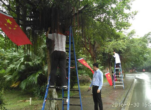 9月30日,為慶祝祖國母親67歲生日到來之際,中科院廣州化學有限公司(廣州化學)團委緊緊圍繞社會主義核心價值觀和以愛國主義為核心的民族精神,為激發(fā)廣大青年團員的愛國情感和更好的宣揚廣州化學的企業(yè)文化,在廣州化學園區(qū)內(nèi)組織開展了“慶國慶、掛國旗”活動。