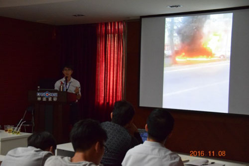 培訓(xùn)講座上,教官根據(jù)廣州化學(xué)的實(shí)際情況,對(duì)火災(zāi)發(fā)生的原因、火災(zāi)的危害性、工作生活場(chǎng)所重點(diǎn)部位火災(zāi)隱患、消防須知以及發(fā)生火災(zāi)后的逃生和自救方法等方面進(jìn)行了詳細(xì)的講解和分析。