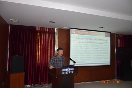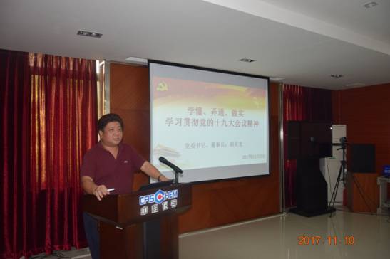 會(huì)上,廣州化學(xué)黨委書記、董事長胡美龍以《學(xué)懂、弄通、做實(shí) 學(xué)習(xí)貫徹黨的十九大會(huì)議精神》為主題做專題學(xué)習(xí)輔導(dǎo),他帶領(lǐng)全體參會(huì)人員認(rèn)真學(xué)習(xí)了黨的十九大報(bào)告并提出廣州化學(xué)在學(xué)習(xí)宣傳貫徹黨的十九大會(huì)議精神的各項(xiàng)要求,他指出黨的十九大繪就了黨和國家未來發(fā)展的新藍(lán)圖,我們要緊密團(tuán)結(jié)在以習(xí)近平同志為核心的黨中央周圍,高舉中國特色社會(huì)主義偉大旗幟,解放思想,改革創(chuàng)新,銳意進(jìn)取,埋頭苦干,全面貫徹黨的十九大精神。他要求廣州化學(xué)全體黨員要通過中心組學(xué)習(xí)、支部學(xué)習(xí)、黨員交流等多渠道全方位地進(jìn)行學(xué)習(xí)宣傳貫徹黨的十九大精神和廣東省委在學(xué)習(xí)宣傳貫徹黨的十九大精神方面的有關(guān)要求,讓每一個(gè)黨員每一個(gè)員工都能切實(shí)按照習(xí)近平總書記的要求“學(xué)懂、弄通、做實(shí)”黨的十九大精神,切實(shí)將黨的十九大精神落實(shí)到企業(yè)的經(jīng)營發(fā)展中。
