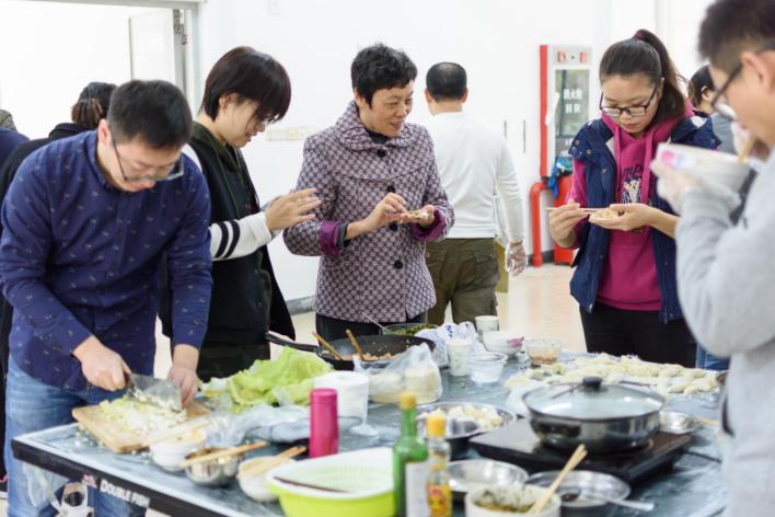 雖然各位同學來自五湖四海,口味也不盡相同,但是大家在此歡聚一堂,豐富多彩的餃子反而為這頓節(jié)日大餐帶來了無盡的驚喜和歡樂。同學們大顯神通,準備了別具一格的各色餃子。既有皮薄餡大,賣相誘人的傳統(tǒng)水餃,也有造型豐富,賞心悅目的花朵餃子,還有樸實無華卻內(nèi)涵豐富的鮮蝦水餃,等等。一只只餃子抒發(fā)的是同學們對冬天的贊美和熱愛,寄托了同學們對來年美好生活的憧憬和期盼。
