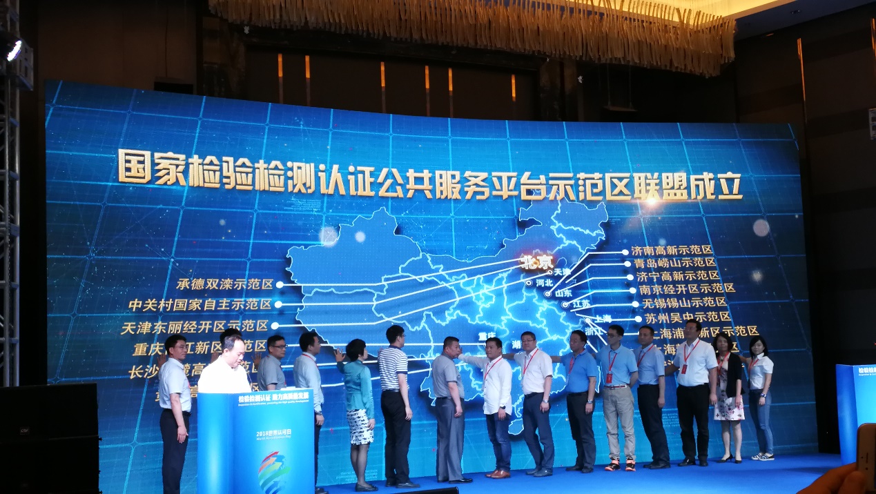 6月9日,由中國國家認證認可監(jiān)督管理委員會(國家認監(jiān)委)、長沙市人民政府主辦的“檢驗檢測認證助力高質(zhì)量發(fā)展2018年世界認可日”分場活動在長沙舉行。國家認監(jiān)委黨組副書記、副主任劉衛(wèi)軍,長沙市委副書記徐宏源,湖南省質(zhì)量技術(shù)監(jiān)督局黨組書記、局長歐陽彪出席活動。來自北京、上海、重慶、寧波、長沙等地的15家國家檢驗檢測認證公共服務(wù)平臺示范區(qū)代表共同發(fā)起成立了國家檢驗檢測認證公共服務(wù)平臺示范區(qū)聯(lián)盟。