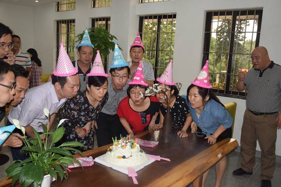 七月生日的員工們一起點(diǎn)燃蠟燭,在生日歌聲中許下心愿,工會(huì)為每位壽星們精心準(zhǔn)備了小禮物,大家在歡聲笑語中品嘗美味的蛋糕……