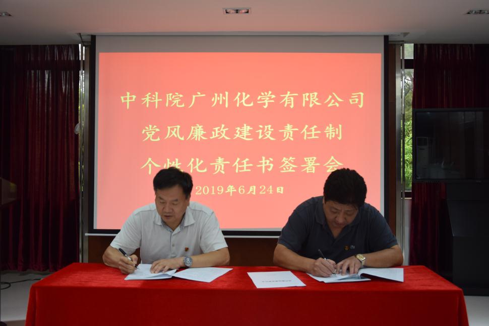 為貫徹落實全面從嚴(yán)治黨的總體要求,深入推進中科院廣州化學(xué)有限公司(廣州化學(xué))黨風(fēng)廉政建設(shè)和反腐倡廉工作,6月24日,廣州化學(xué)召開了《黨風(fēng)廉政個性化責(zé)任書》(責(zé)任書)現(xiàn)場簽署會,廣州化學(xué)中層及以上領(lǐng)導(dǎo)干部、控股公司總助以上領(lǐng)導(dǎo)干部、在職黨支部書記參加會議,會議由廣州化學(xué)黨委副書記、紀(jì)委書記申智慧主持。