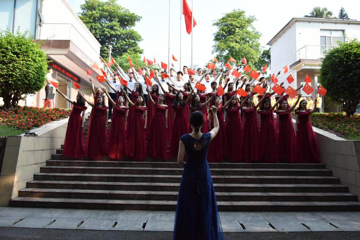 活動當天秋高氣爽,晴空萬里,由20名護旗手組成的儀仗隊,排列成整齊的方隊,邁著鏗鏘的步伐,護衛(wèi)著國旗進入場地,隨著《義勇軍進行曲》的奏起,鮮艷的五星紅旗冉冉升起,在場人員行注目禮齊唱國歌,嘹亮的國歌聲響徹天際。隨后,由廣州化學(xué)工會、化灌公司工會、中科檢測工會組成的合唱隊齊唱《國家》、《走進新時代》,家是最小國,國是千萬家,國家的興盛是我們每個中國人的使命和榮光,中國特色社會主義進入了新時代,廣州化學(xué)也結(jié)合自身實際提出了“新時代、新征程、新藍海、新領(lǐng)域、新臺階”的發(fā)展方針,振奮人心的歌聲,唱出了廣州化學(xué)兒女對黨、對祖國的熱愛,也唱出作為廣州化學(xué)一份子的自豪與自信。最后,全體在場人員組成方陣擺出“70”高呼“祖國萬歲”一起慶祝新中國成立70周年。
