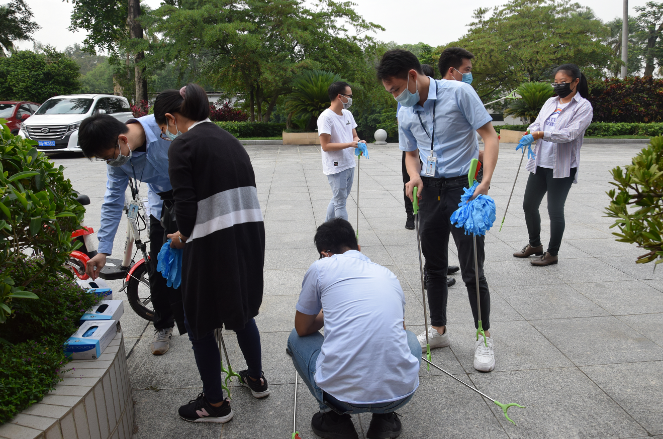 結合當前的防疫要求,此次活動在廣州化學園區(qū)內分散開展。在活動開始前廣州化學團委召集各團支部書記開展了活動前的防疫安全教育,并發(fā)放了垃圾夾、一次性手套等用品。
