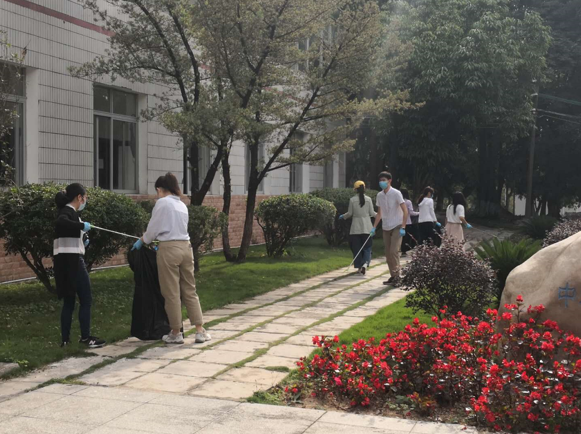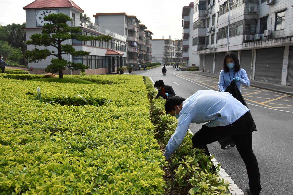 活動當天,春風和煦,綠意盎然,大家手持清潔工具仔細搜索所屬片區(qū)的垃圾,花壇中、草叢中,小到一個煙頭、一張碎紙片都不放過,認真清理我們的家園。