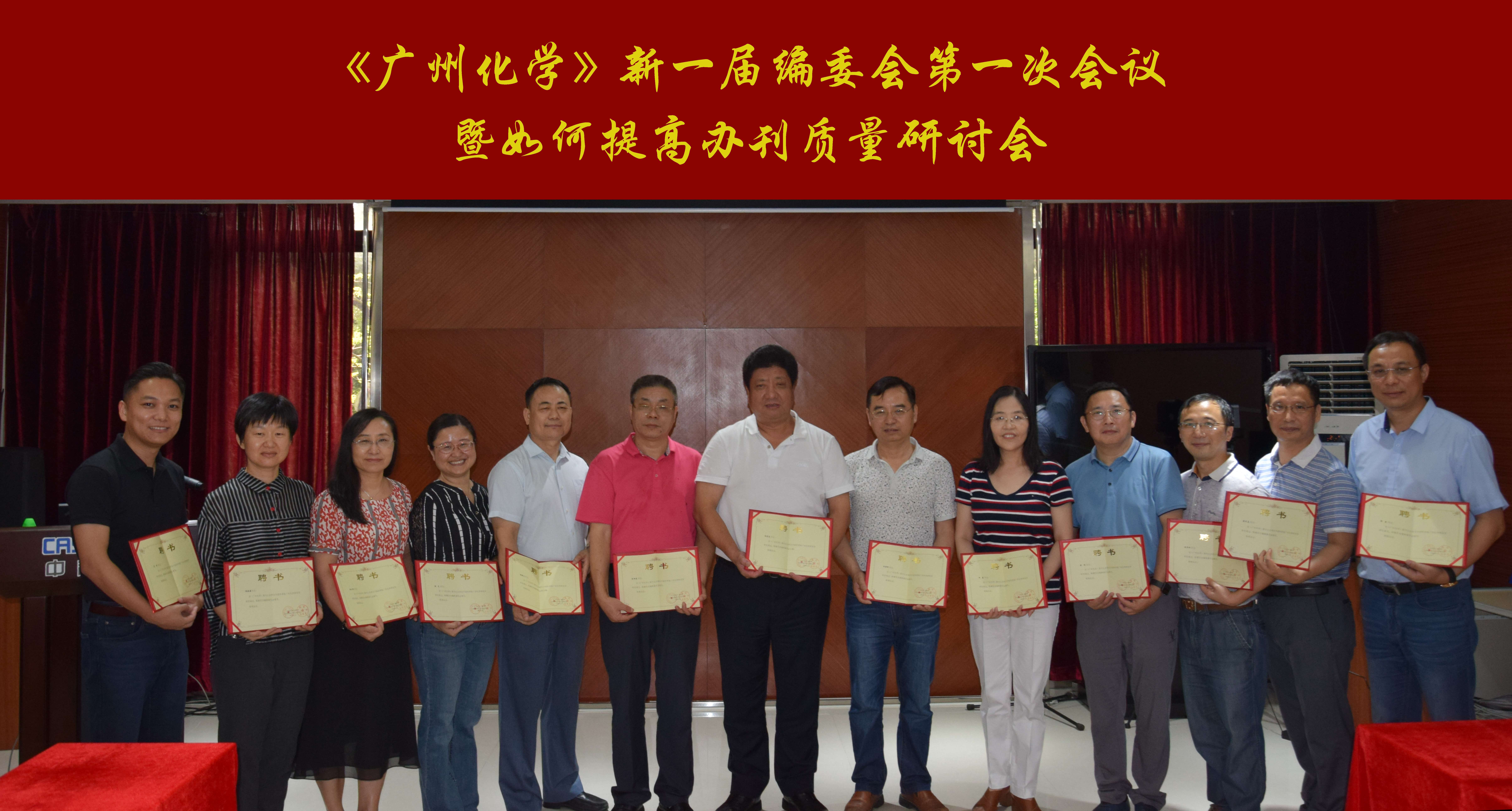 2020年6月15日,中科院廣州化學(xué)有限公司(廣州化學(xué))組織召開了主辦期刊《廣州化學(xué)》新一屆編委會的第一次會議,暨如何提高辦刊質(zhì)量研討會。來自中山大學(xué)、華南理工大學(xué)、廣東工業(yè)大學(xué)、華南農(nóng)業(yè)大學(xué)、廣州大學(xué)、中國科學(xué)院廣州能源研究所等廣東地區(qū)知名高校和科研院所的主編、副主編及編委等19人參加了會議。廣州化學(xué)黨委書記、董事長,期刊主編胡美龍研究員為新一屆編委發(fā)放聘書并合影留念。