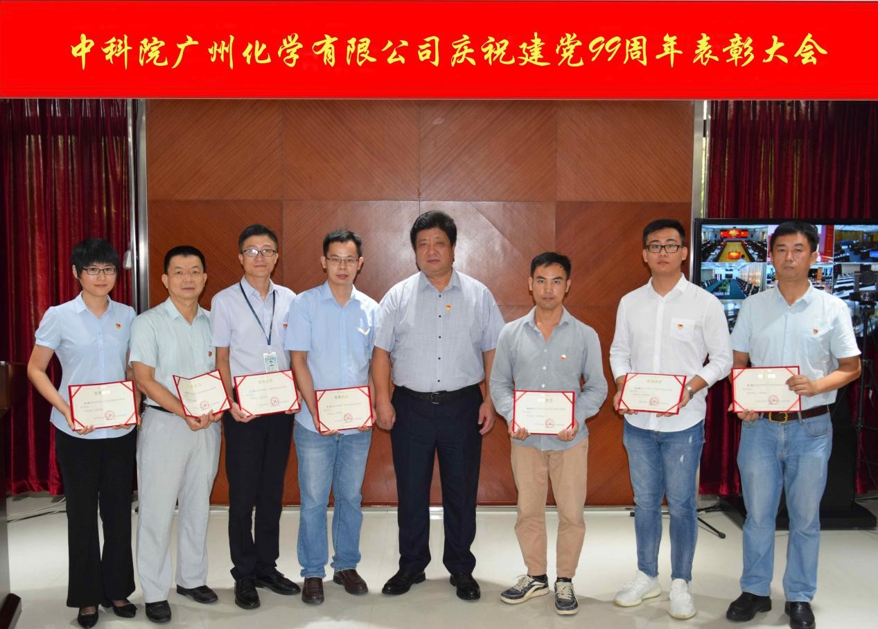 7月1日,為慶祝中國(guó)共產(chǎn)黨成立99周年,進(jìn)一步深化中科院廣州化學(xué)有限公司(廣州化學(xué))“不忘初心、牢記使命”主題教育成果,發(fā)揮各黨支部的戰(zhàn)斗堡壘作用和黨員的先鋒模范帶頭作用,弘揚(yáng)樹(shù)立典型、弘揚(yáng)正氣的企業(yè)文化,廣州化學(xué)召開(kāi)了慶祝建黨99周年表彰大會(huì),廣州化學(xué)黨委書(shū)記胡美龍為獲獎(jiǎng)人員和支部頒獎(jiǎng)并合影留念。
