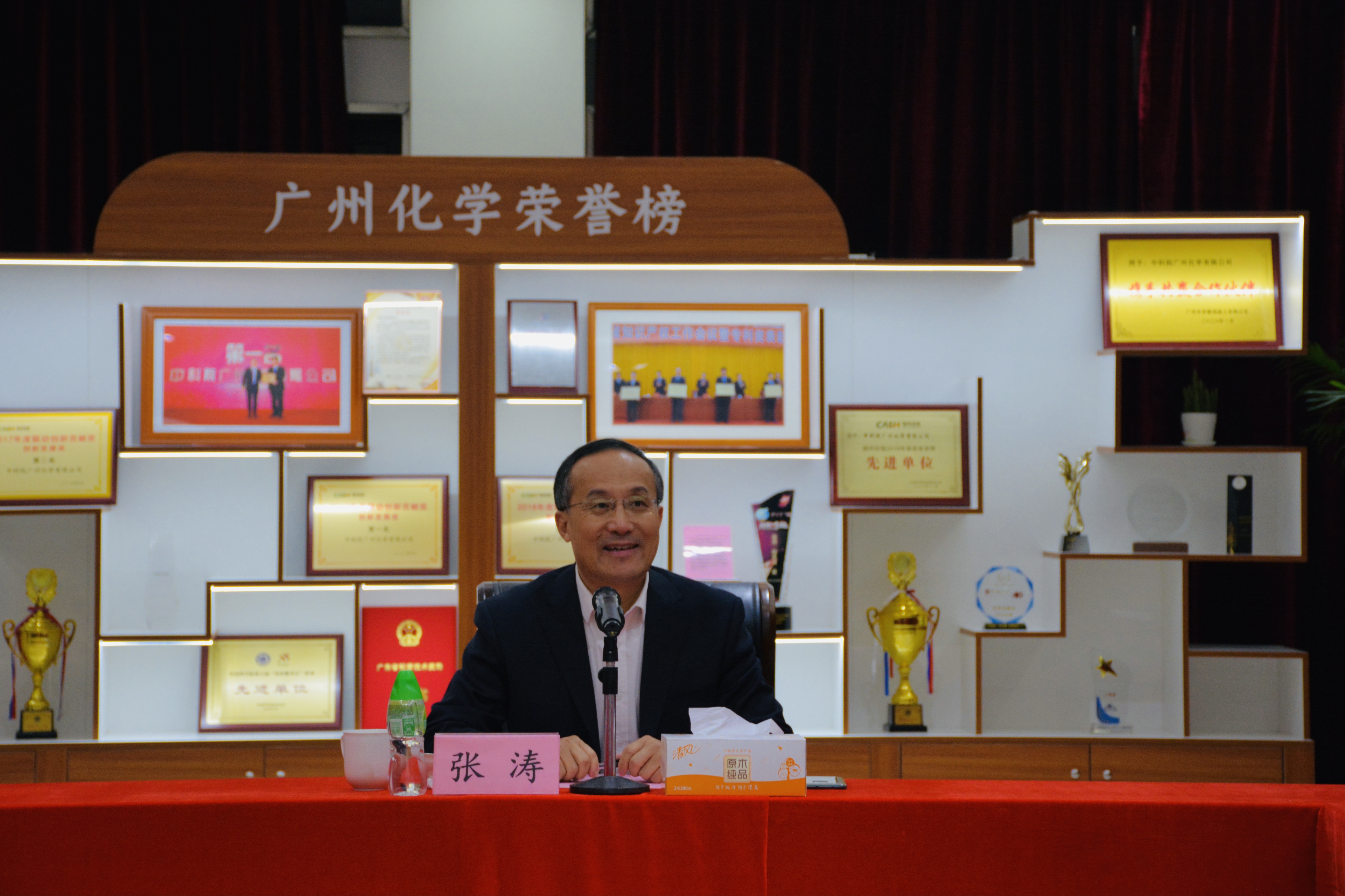 隨后,張濤一行與廣州化學(xué)中層以上人員進(jìn)行了座談交流。廣州化學(xué)黨委書記、董事長胡美龍作了題為《傳承創(chuàng)新 發(fā)展——廣州化學(xué)轉(zhuǎn)制19年的發(fā)展歷程》的工作匯報(bào),他首先感謝中國科學(xué)院黨組、中國科學(xué)院經(jīng)管委、國科控股黨委、廣州分院等上級(jí)領(lǐng)導(dǎo)對(duì)廣州化學(xué)長期以來的支持和幫助,他介紹了廣州化學(xué)的歷史沿革及發(fā)展歷程,匯報(bào)了廣州化學(xué)近年的戰(zhàn)略舉措和取得的經(jīng)營成果。