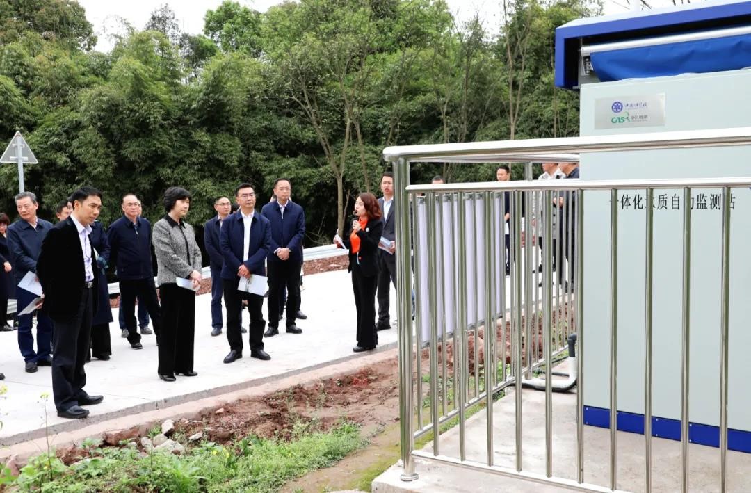 張軒來到岸邊察看水情、了解水質(zhì)情況并現(xiàn)場聽取了重慶中科檢測對橋東河水質(zhì)自動(dòng)監(jiān)測微型站建設(shè)與運(yùn)維情況的匯報(bào),對水質(zhì)自動(dòng)監(jiān)測微型站的建設(shè)運(yùn)行給予了充分肯定。