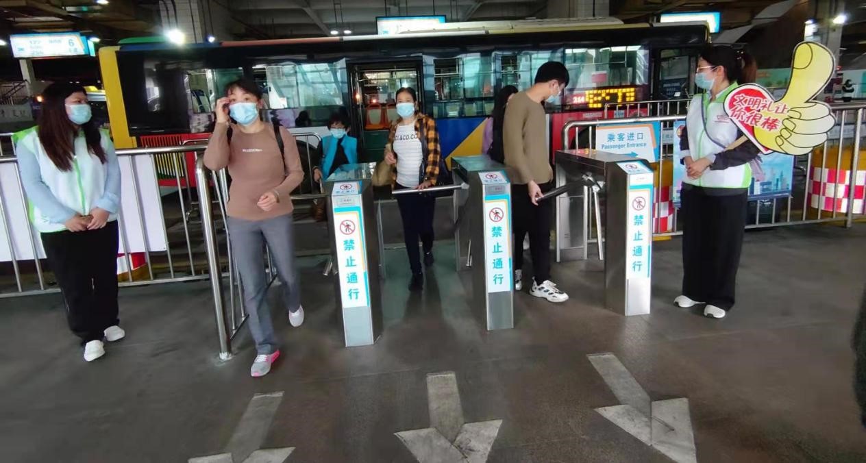 此次活動中,志愿者們來到熙熙攘攘的廣州火車東站公交站場,身穿志愿服、手持“大拇指”標識牌開展文明交通宣教、安全檢查、疫情防控、線路指引、乘車指導(dǎo)、城市景點咨詢、車站票務(wù)咨詢、天氣查詢、行李搬運、愛心幫扶等學(xué)雷鋒志愿活動,為進站旅客及市民朋友提供暖心服務(wù)。他們用耐心傳播文明理念、用愛心傳遞志愿精神,積極創(chuàng)造文明交通、和諧有序的運營氛圍。他們熱情的服務(wù)態(tài)度和奉獻精神獲得了過往旅客的一致好評。