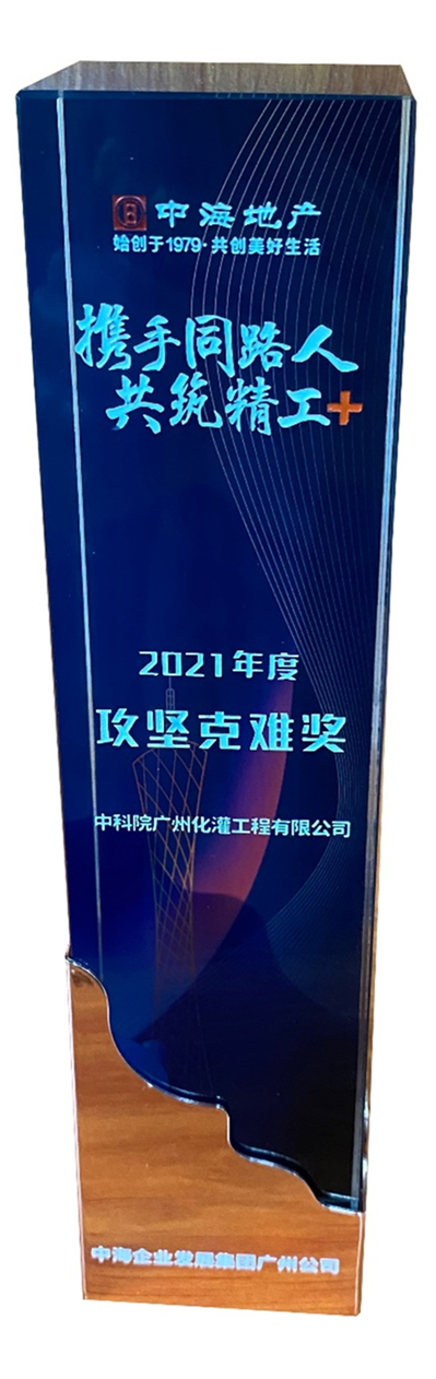 3月26日,在中海企業(yè)發(fā)展集團(tuán)(中海地產(chǎn))廣州公司舉辦的主題為“攜手同路人 共筑精工+”的2021年度合作商表彰大會(huì)上,中科院廣州化學(xué)有限公司控股公司——中科院廣州化灌工程有限公司(化灌公司)榮獲2021年度“攻堅(jiān)克難獎(jiǎng)”。