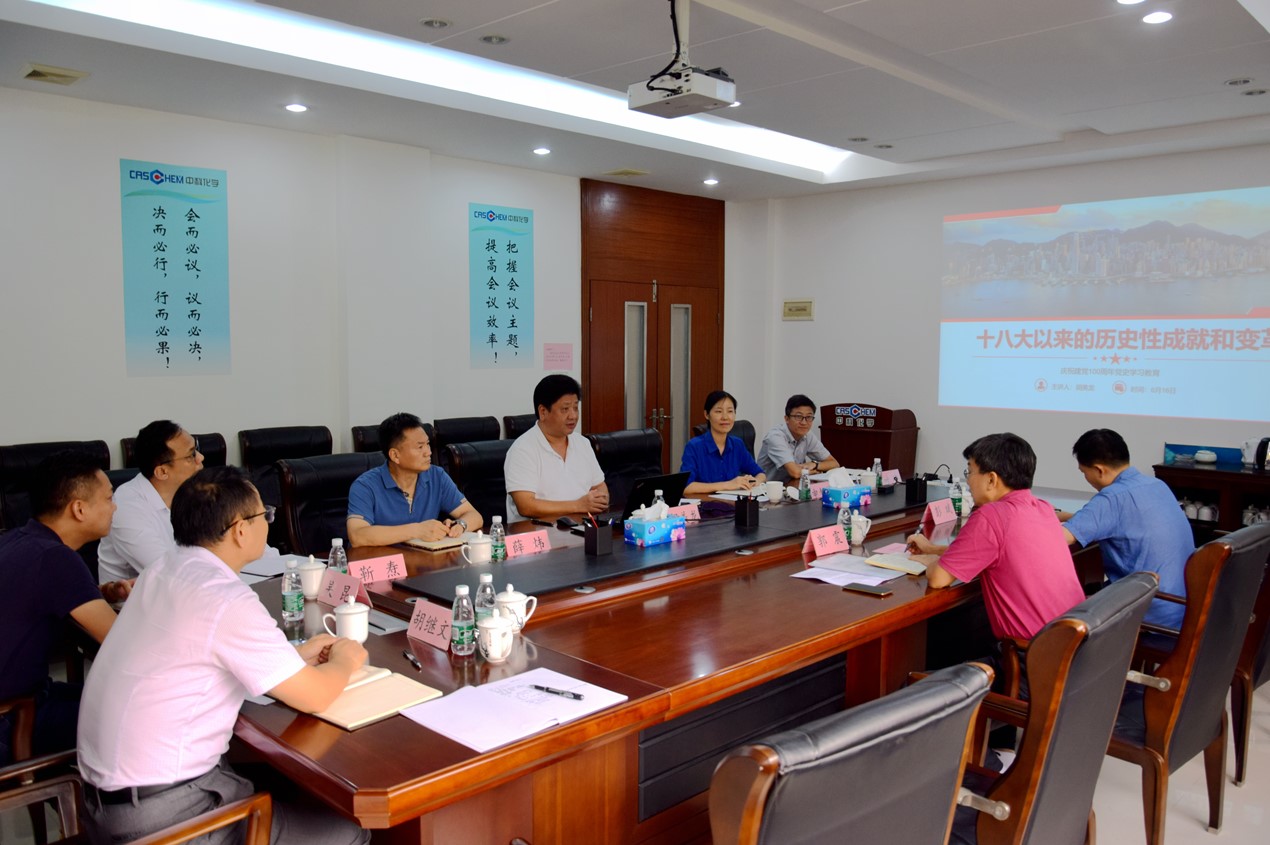 6月16日,中科院廣州化學(xué)有限公司(廣州化學(xué))黨委理論學(xué)習(xí)中心組召開了以“學(xué)習(xí)黨的十八大以來的歷史,促進(jìn)公司快速發(fā)展”為主題的黨史學(xué)習(xí)教育專題學(xué)習(xí)會(huì)(中心組學(xué)習(xí)會(huì)),廣州化學(xué)黨委委員、領(lǐng)導(dǎo)班子成員參加會(huì)議,中科院黨史學(xué)習(xí)教育第19指導(dǎo)組成員郭震、彭斌到會(huì)指導(dǎo)。會(huì)議由廣州化學(xué)黨委書記、董事長胡美龍主持。