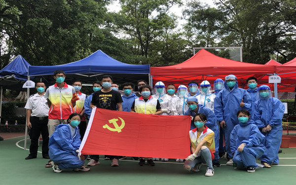 2021年6月4日,廣州化學成立以入黨積極分子、預備黨員、青年黨員等人員組成的工作小組,在核酸檢測采樣點搭建雨棚、布置場地、保障電力網(wǎng)絡、進行區(qū)域劃分等,圓滿完成園區(qū)全員核酸檢測采樣任務。